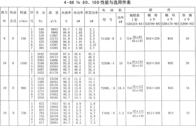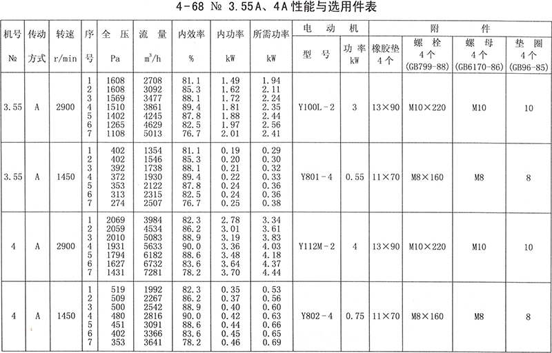 機(jī)號為No2.8 ~5的4-68型風(fēng)機(jī)主要由葉輪,機(jī)殼、進(jìn)風(fēng)口等部分配直聯(lián)電動機(jī)組成,No6.3~20除上述部分外還有傳動部分。