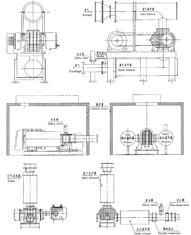 L-type Roots blower is a joint design of the series Roots blower. I am supporting the design of the L-type muffler, flange can be directly connected. Muffler and resistance loss are similar to Z-type muffler.