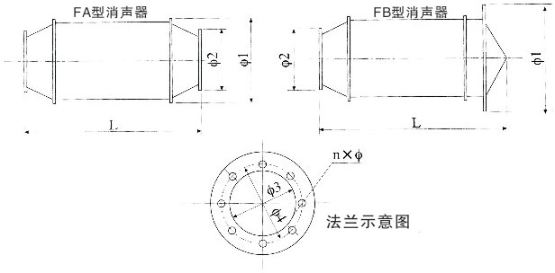 F-type muffler is divided into A, B two forms. A-type ends are flanges, can be used in series in the pipeline, B-type one end of the flange, the other end of the rain suction hood. Can be used for the use of exhaust.
